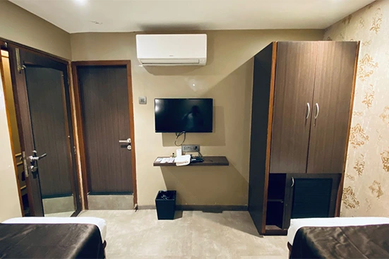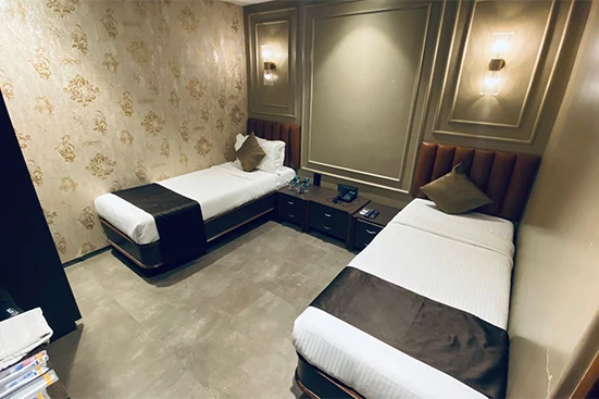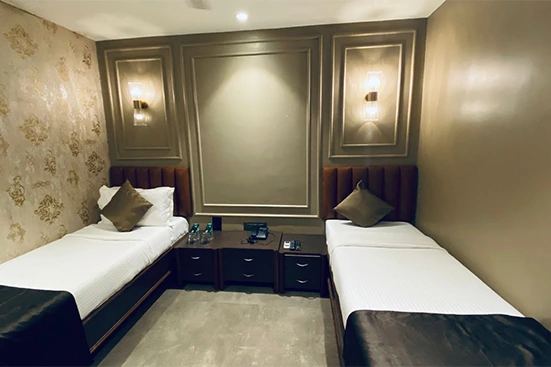 The Super Deluxe Twin Room at Gulf Hotel Colaba is ideal for two guests looking for comfort and convenience. It features two single beds, air conditioning, free WiFi, a TV, and daily housekeeping. The room is spacious and well maintained, perfect for business or leisure travelers. Shared bathrooms are clean and accessible 24 hours. Located near Gateway of India and Colaba Market, it offers a great stay in a central location at a reasonable price.
